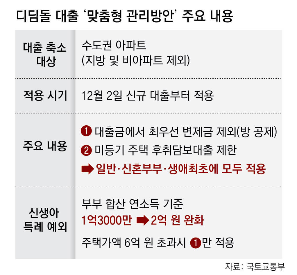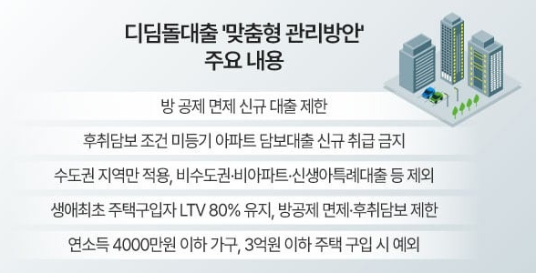 이에 따라 방 공제(주택임대차보호법상 최우선 변제 금액) 면제 대출과 신규 분양 아파트에 대한 후취담보 조건의 미등기 아파트 담보대출이 원칙적으로 제한됩니다.