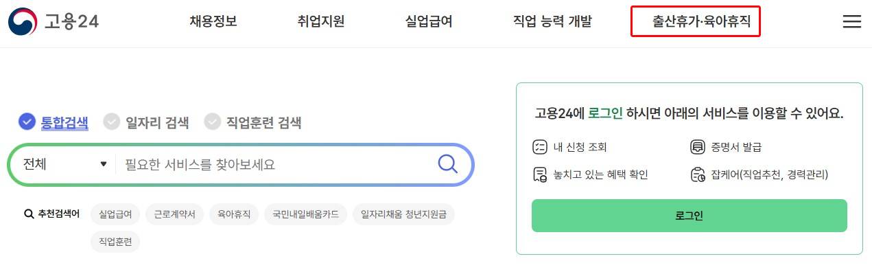1. 고용보험 홈페이지(고용24)에 접속합니다.